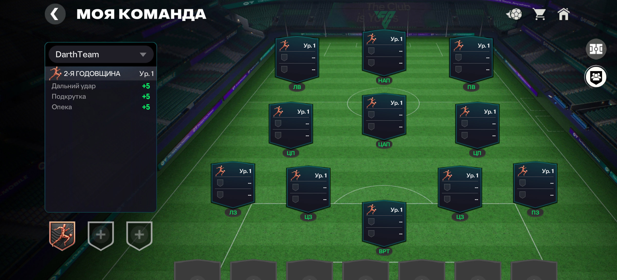 ОБЩ вашей команды складывается из уровней карточек в основном составе и, внимание, из уровней карточек ваших запасных игроков. Обязательно следите за своей скамейкой запасных: низкоуровневые игроки будут уменьшать ОБЩ вашей команды. Если у вас нет качественных замен, то лучше вообще убрать оттуда игроков (чтобы убрать игрока из замены, нужно нажать «минус» на карточке, чтобы добавить — нажать «плюс» и перетащить в поле выбранную карточку). Если игрок стоит не на своей позиции, его ОБЩ автоматически уменьшается (за исключением карточек некоторых событий). На позицию вратаря можно поставить только вратаря.