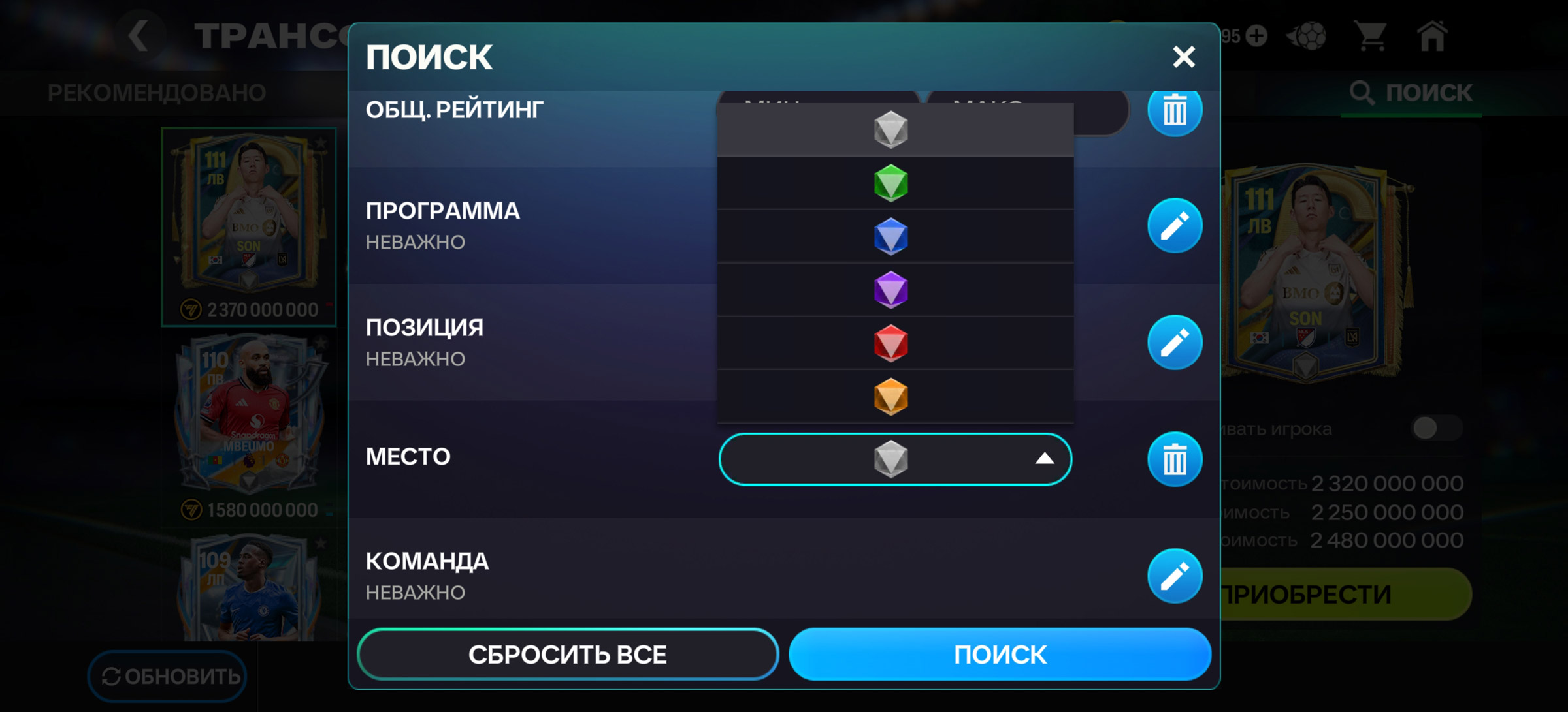 Обратите внимание: перелив ранга из прокаченной ранее карточки в новую невозможен. Зато теперь игроков с повышенным рангом можно продавать/покупать на трансферном рынке (не забудьте перенести тренировочный опыт, иначе он пропадет). При покупке вы получаете игрока с тем количеством очков навыков, которое заложено уровнем ранга. Кроме того, тренированной карточкой можно прокачивать любого другого игрока, так что вложенный в неё опыт в таком случае не пропадёт. Ранг карточки на рынке и среди своих игроков заложен в фильтре и обозначается разноцветными бриллиантами.
