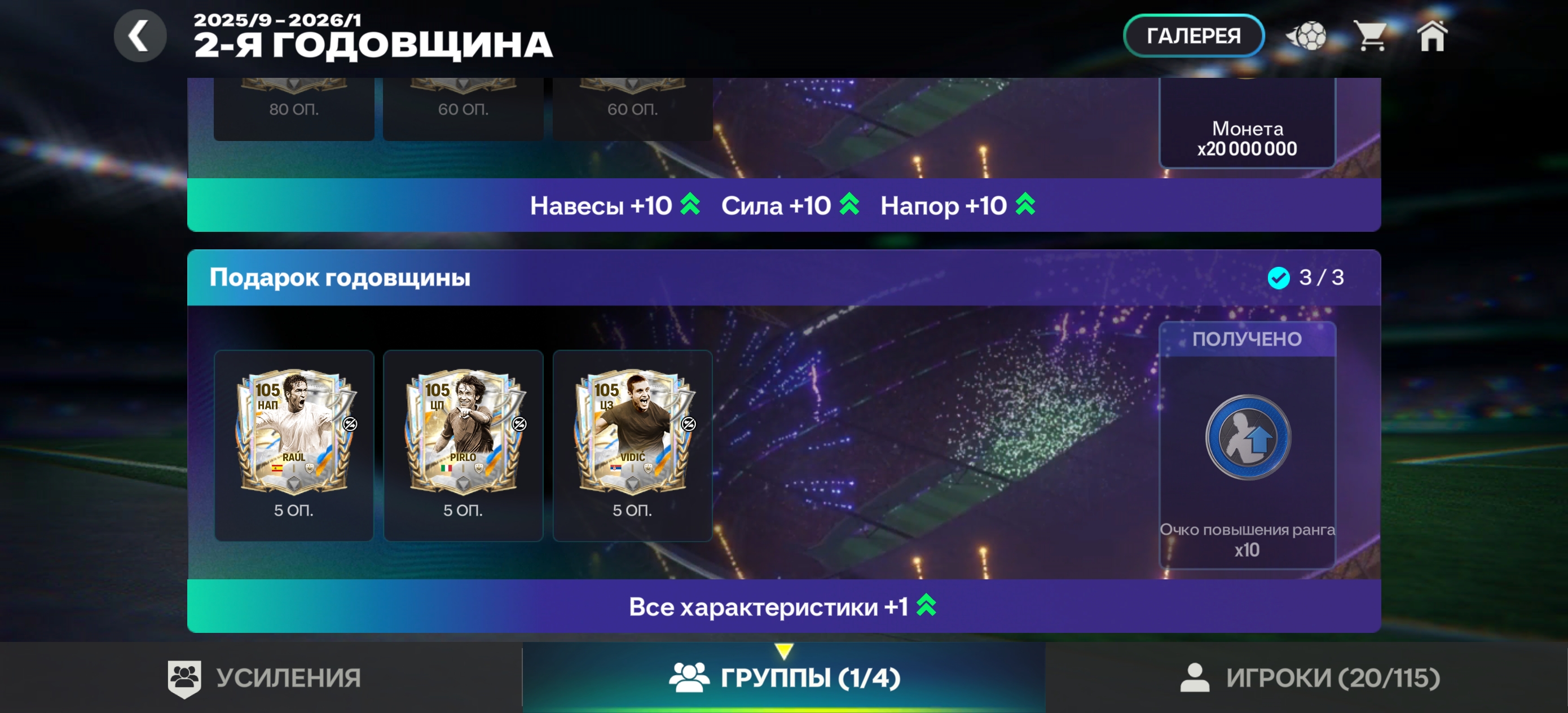 Игрок тренируется любыми карточками. Тренировки делятся на уровни (всего их 30), направлены на улучшение игровых качеств игрока, но не повышают его ОБЩ. Обратите внимание: в FC Mobile 26 игрока можно сразу тренировать до максимального уровня! Для переноса тренировки используются специальные жетоны, их можно получить в событиях и приобрести в магазине.