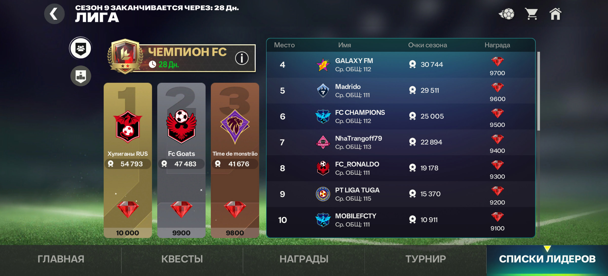 Единственное, что можно было получить от текущего состава — это награды за ОБЩ при сбросе сезона. Основной состав (включая игроков за донат), монеты, самоцветы, уровень — всё сбрасывалось (кроме FC-поинтов, которые даются за донат), и игра начиналась с нуля. Ну или почти с нуля, с учетом бонусов за оконченный сезон.